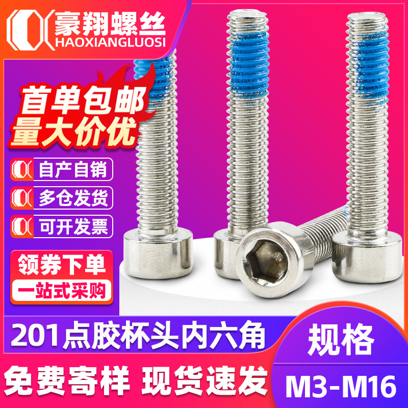 201ステンレス円筒ヘッド内六角点ゴムねじカップヘッド緩み防止六角ボルトm3/m5/m 6/m 8