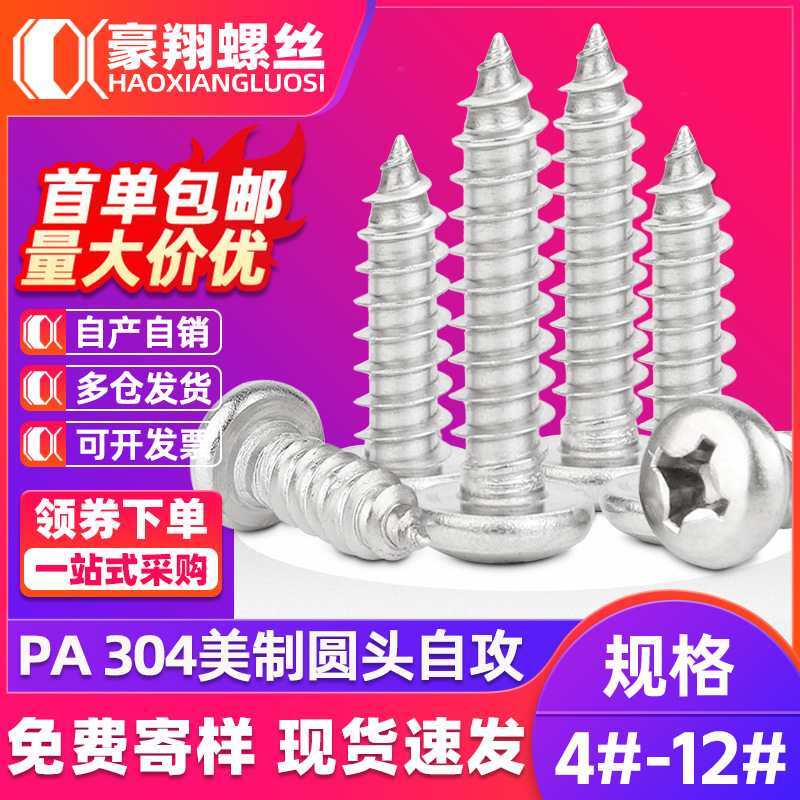 304ステンレス美製丸頭タッピングねじpa十字盤頭ねじ卸売り4 #/6 #/7 #/8 #/10 #