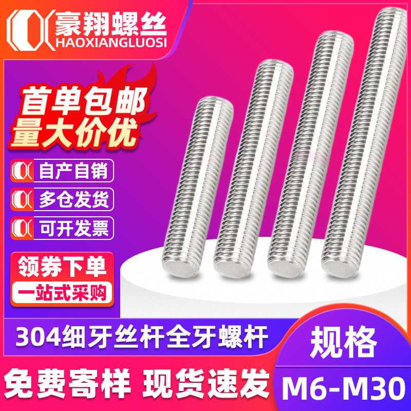 304ステンレスの細い歯のねじの全歯のスクリューの細い歯の手は歯の条のメーカーの卸売りのm 8/m 10/m 20/m 30をねじります。