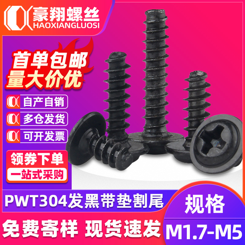 PWT黒色304ステンレス丸頭パッド付き尾切りねじ十字盤頭中間子フライス尾タッピングスクリュー