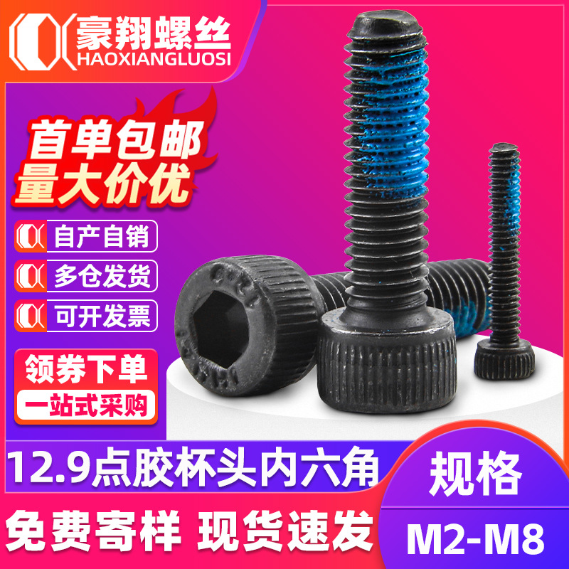 12.9級円筒頭六角穴付きドロップスクリュー、カップヘッドドロップスクリュー、青色接着剤ボルト、黒色小ねじM3/M4/M5