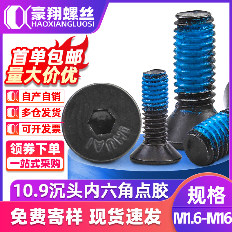 10.9級高強度沈頭内六角点ゴムねじ平髪黒色緩み防止点ゴムねじm4/m5