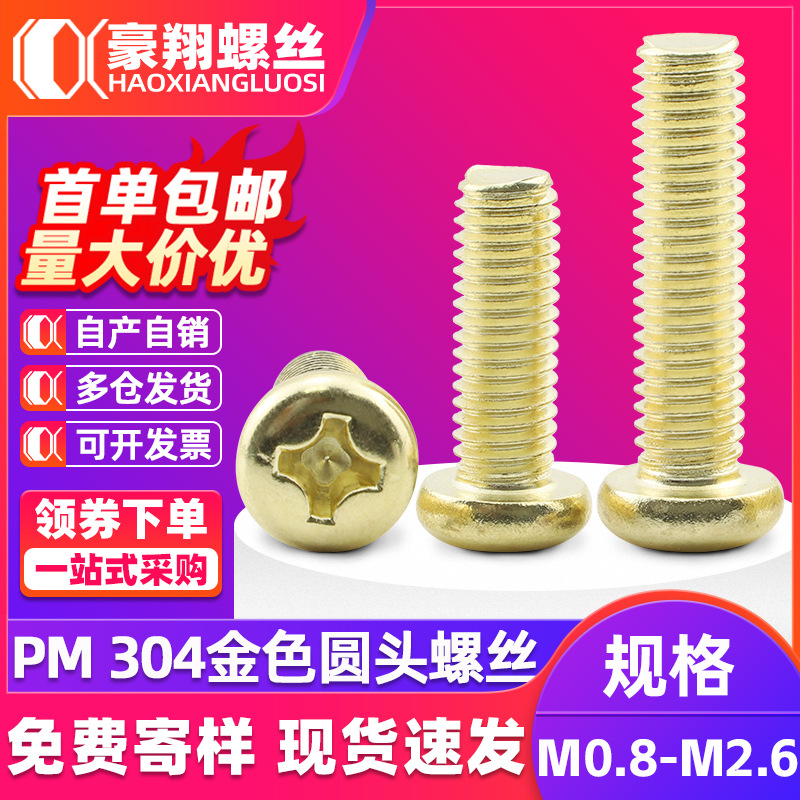 304ステンレスメッキ金色丸頭機歯小ねじ十字盤頭ミニねじm1.2/m1.4/m2.6