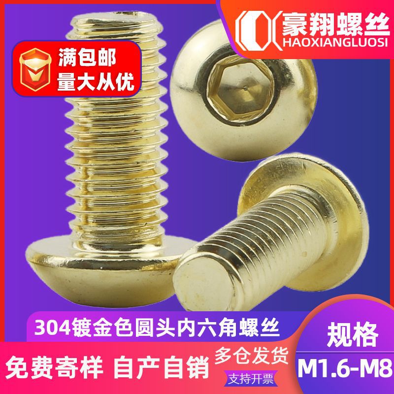 金メッキ304ステンレス半円頭六角ねじ金色盤頭六角ボルト卸売りm 5/m 6/m 8