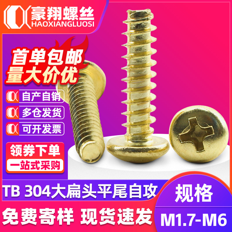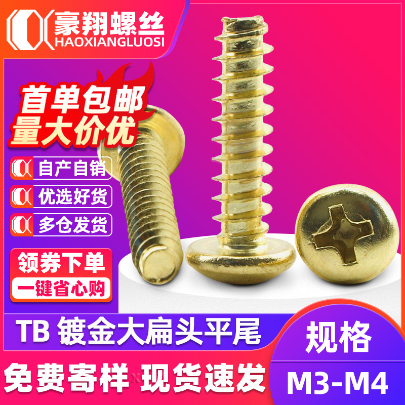 TB炭素鋼メッキ金色十字平頭平尾タッピングねじキノコ傘頭平尾ねじM3.5/M4/M5