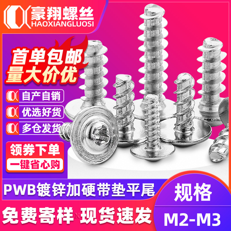 Pwb亜鉛メッキ焼入れハード十字ラウンドヘッドパッド付き平尾タッピングスクリューヘッドバンド中間子ネジm2/m3