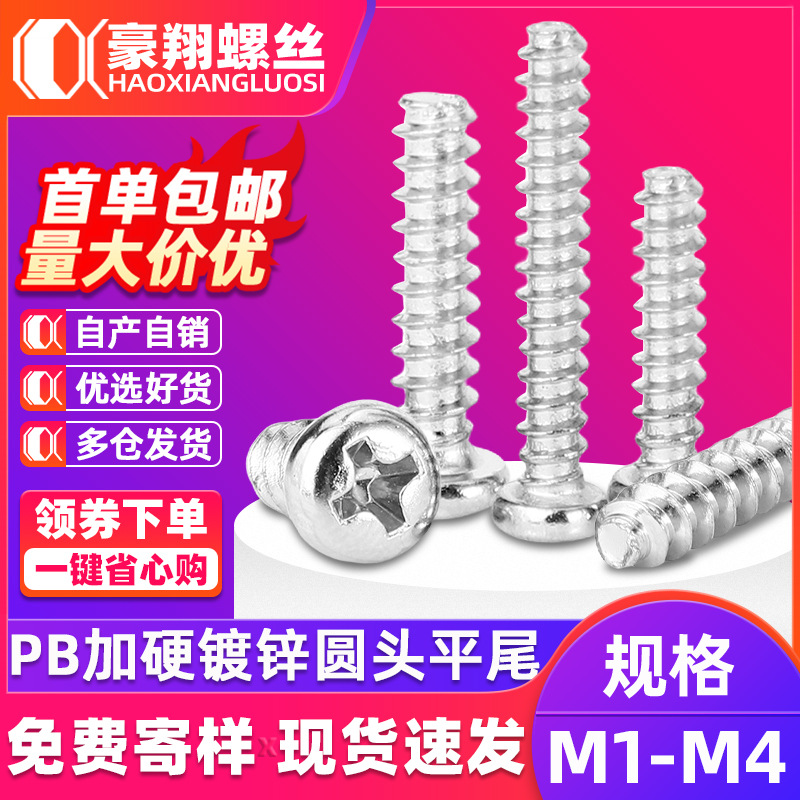 Pb白亜鉛メッキ十字丸頭平尾タッピングねじ焼入れ硬頭平尾ねじm2.3/m2.6/m3