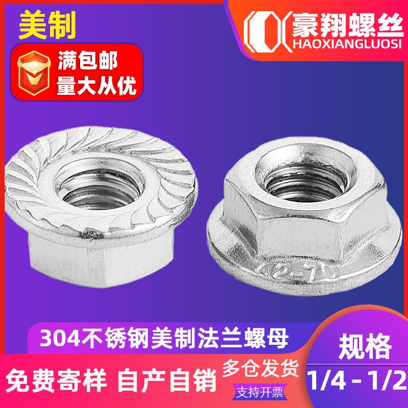 ソース304ステンレス美製フランジナット卸売りフランジ面パッド付きナットナット1/4 | 3/8 | 1/2
