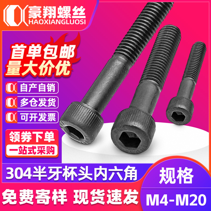 黒色304ステンレス円筒頭六角半歯ボルトメッキ黒亜鉛カップ頭半歯ねじm 6/m 8/m10