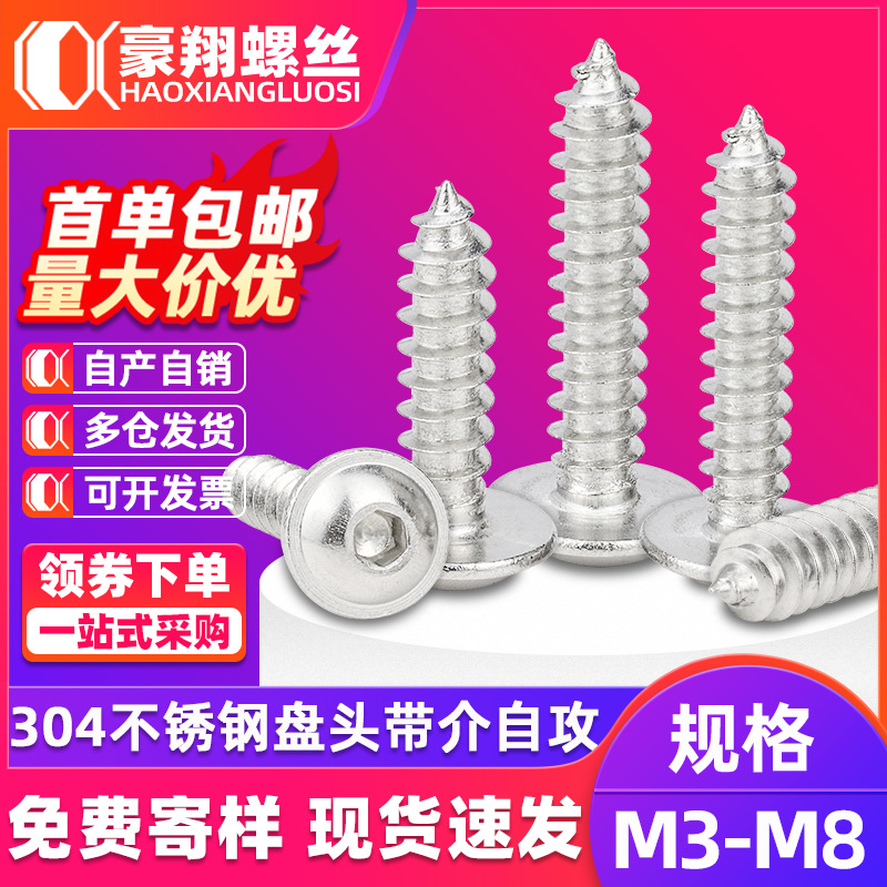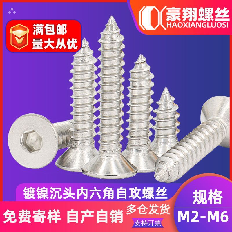 8.8級ニッケルメッキ六角皿頭タッピングねじ高強度内六角平頭タッピングm3/m4/5m/m 6
