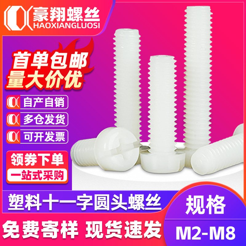 十一字丸頭プラスチックねじ十一字白色ナイロン半円頭機歯ねじm3/m4/5m/m 6