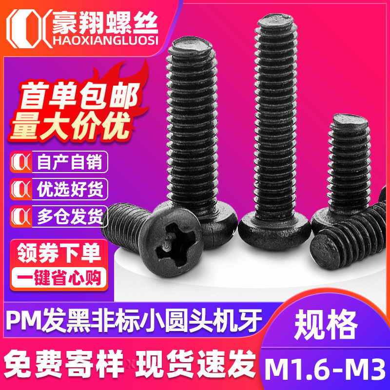 黒十字丸頭非標準小ねじ炭素鋼ミニ小ねじ電子ねじ卸売りm1.6/m2/m3