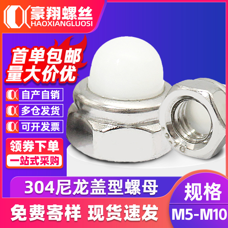 304ステンレス鋼プラスチックボールキャップ型ナット六角ナイロンキャップ飾りナットm5/m6/m8/m10