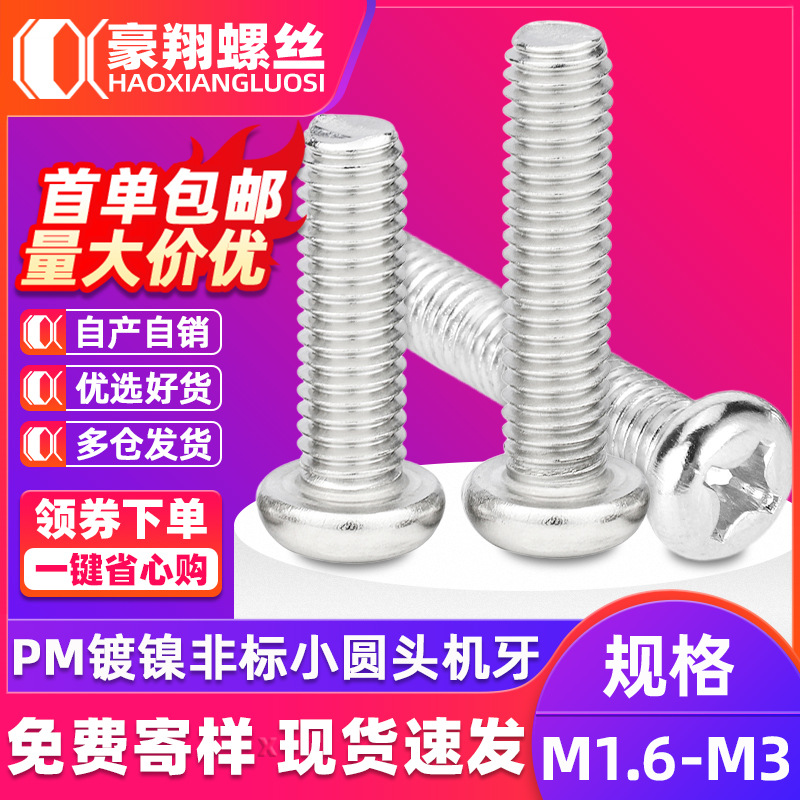 ニッケルメッキ十字丸頭非標準ねじ十字溝皿頭小ねじ精密糸ねじm1.6/m2/m3