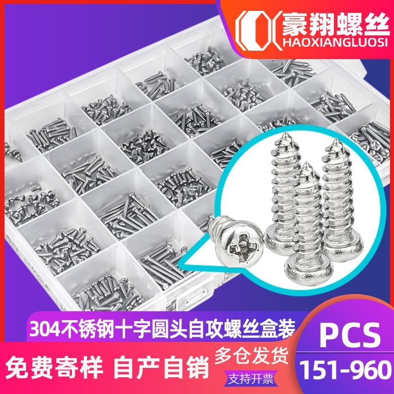 304ステンレス十字盤頭ねじケースクロスボーダーPA丸頭タッピングねじケース400/500pcs