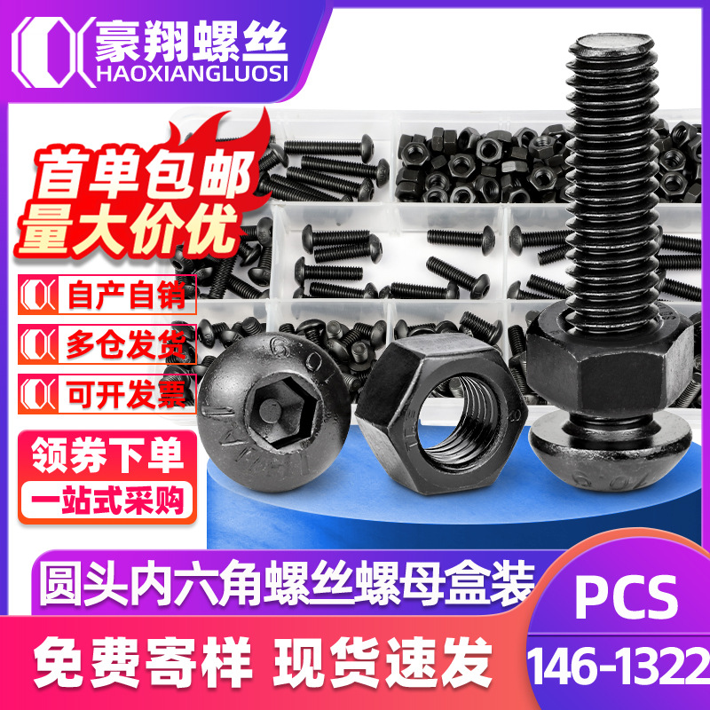 10.9高強度丸頭内六角ねじナットセット黒丸頭ボルト箱ねじ卸売り452