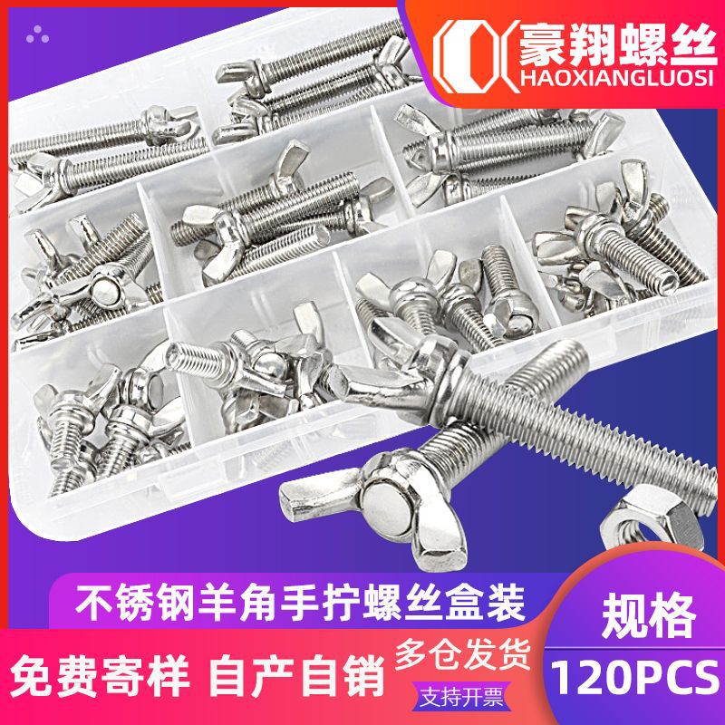 304ステンレスバタフライナットねじセット蝶ねじ釘元宝羊角ボルトケース96/128pcs