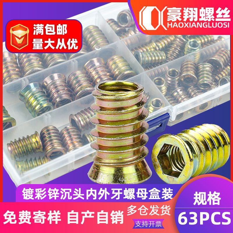メーカー卸売り4.8級炭素鋼メッキ亜鉛沈頭内六角内外歯ナットボックスセット63pcs