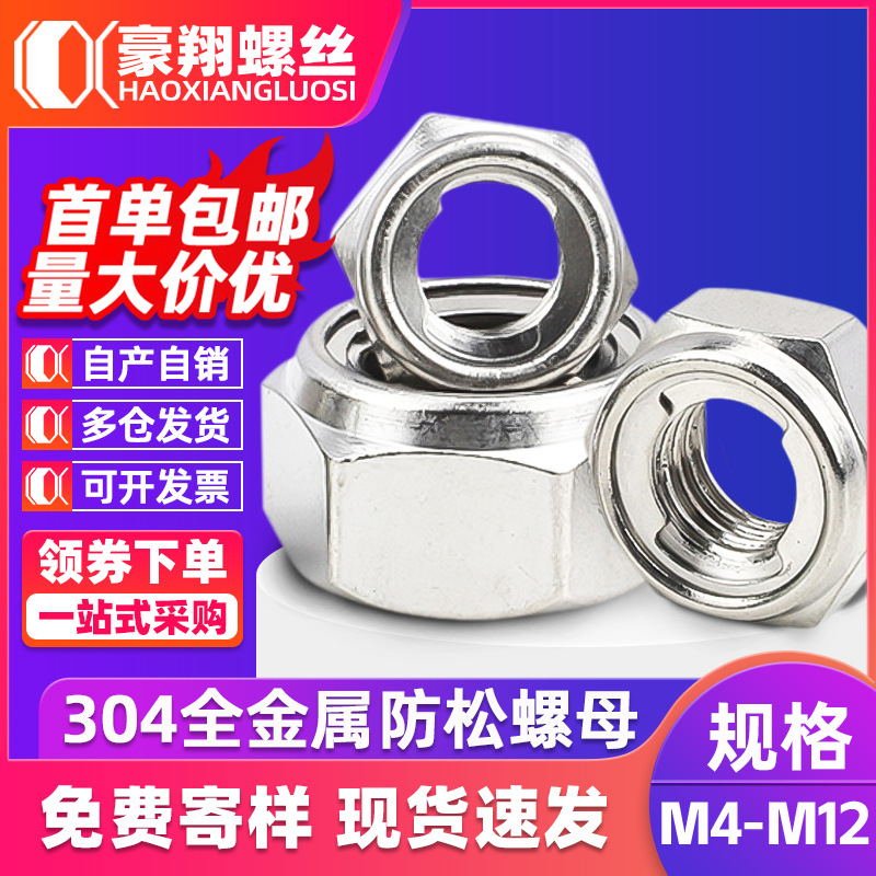 304ステンレス六角全金属ロックナットセルフロック緩み防止ナット滑り止めナットm 5 _ m 6 _ m 8 _ m 10