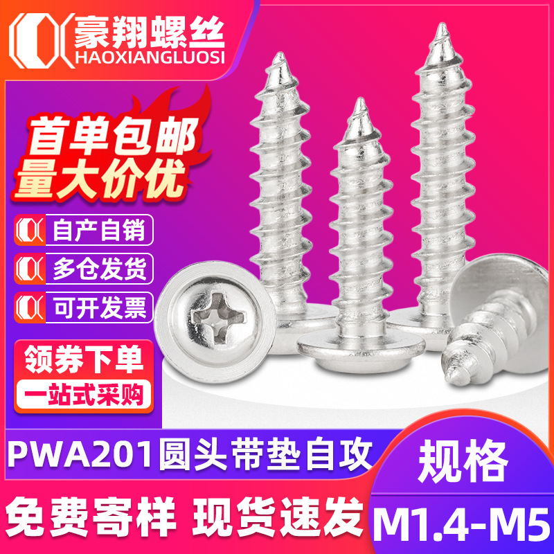 201ステンレスネジ十字溝付丸頭ワッシャー付タッピングスクリューヘッドバンド中間子タッピングm3/pwa