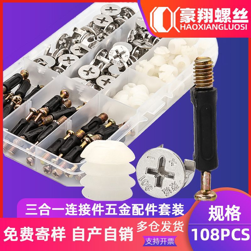 108pcs三合一接続部品箱入り戸棚家具着脱固定リンク部品金物部品セット