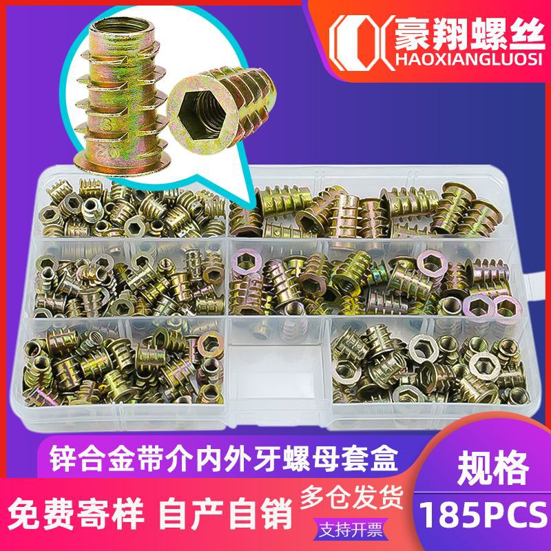 185pcs亜鉛合金台形帯内外歯ナット内六角家具埋込ナットm4 | m 5 | m 6 | m 8