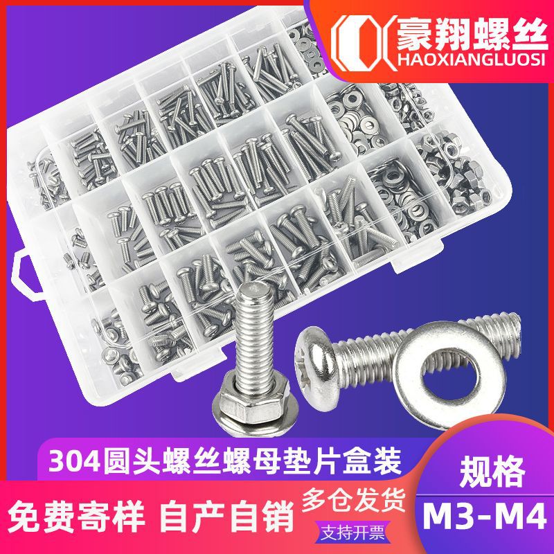 541/721/811pcs箱入り十字丸頭ねじなべナット平パッドセットねじm3 | m4
