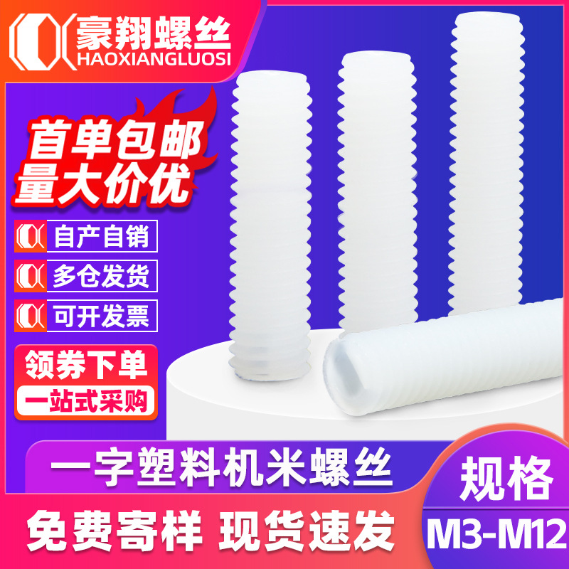 ナイロンねじ一字溝固定プラスチックねじ機m 3 _ m4 _ m 5 _ m 6頭なし平端固定ねじ