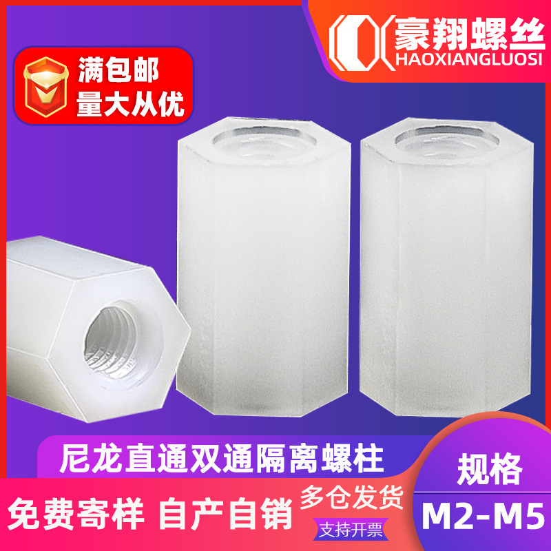 プラスチック双通スタッドナイロン六角双通スタッド白色プラスチック直通双通隔離柱m2 | m3 | m4