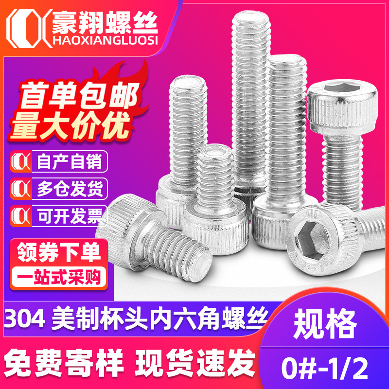 304ステンレス鋼美製六角穴付き円柱ねじカップボルト1/4 5/16 3/8美製ねじ釘