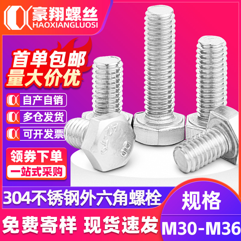 304ステンレス延長ねじ外六角ねじ六角ボルトm 30 _ m 33 _ m 36金属ファスナー