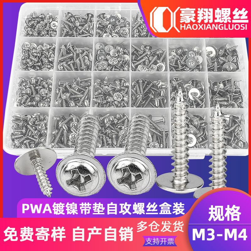 675pcs/835pcsニッケルメッキpwa十字丸頭パッド付きタッピングねじケースタッピングねじセットねじ
