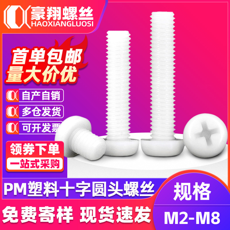 PMプラスチック十字穴付き丸頭ネジ 白色ナイロン皿頭機械ネジ 十字穴付き絶縁ネジ M4M6M8