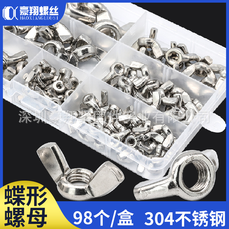 304ステンレス蝶形ナットセット手ねじりナット羊角元宝ナット蝶母セット98pcs