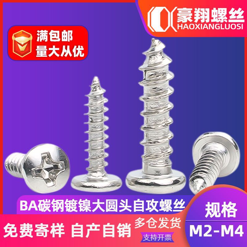 Ba炭素鋼ニッケルメッキ十字溝大丸頭タッピングねじ大盤頭尖尾ねじm2 | m3 | m3.5 | m4