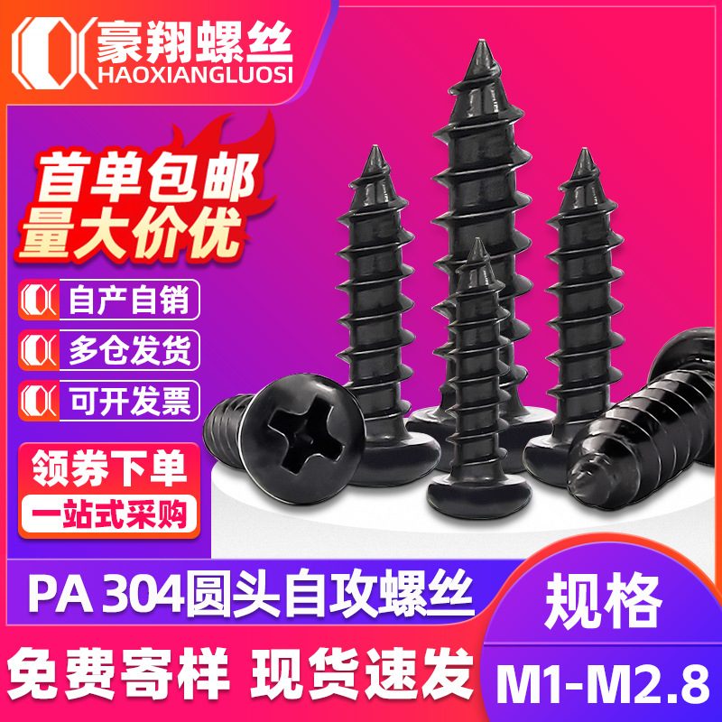 304ステンレスメッキ黒盤頭タッピングねじpa十字盤頭どら釘スポットm1.4/m1.6/m1.8