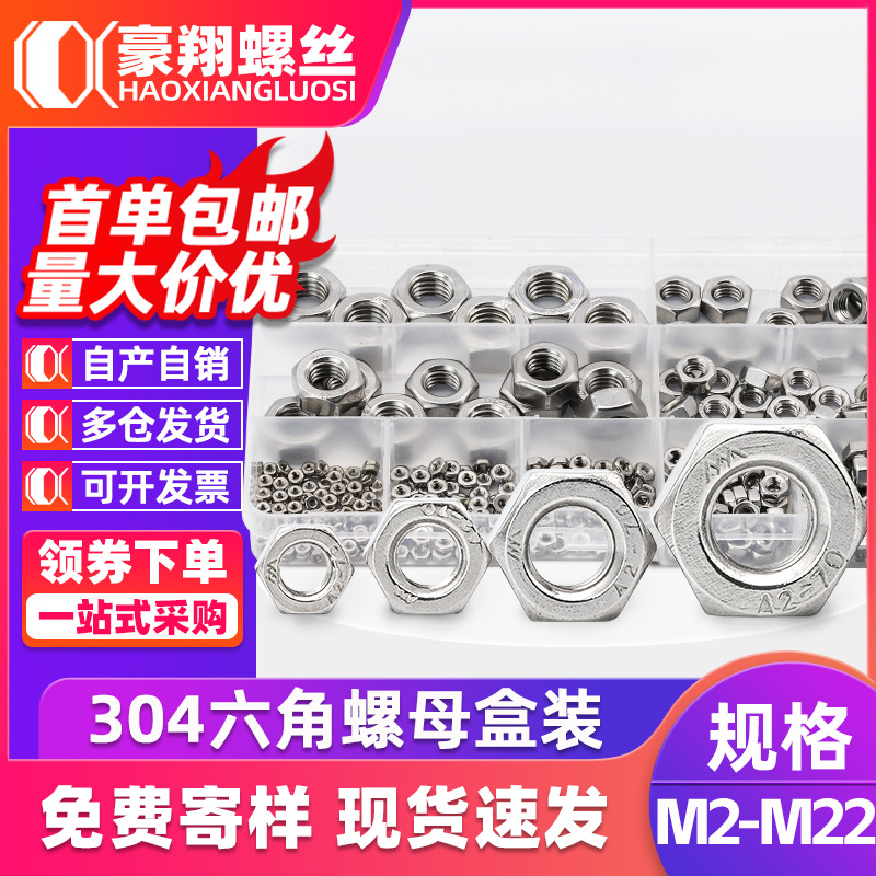 304ステンレスフランジナットセット滑り止め花歯ナットフランジ母箱源メーカー192pcs