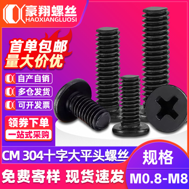 304 ステンレス鋼黒色十字皿ネジ CM 大型平頭薄頭ネジ コンピュータネジ M2M3M4
