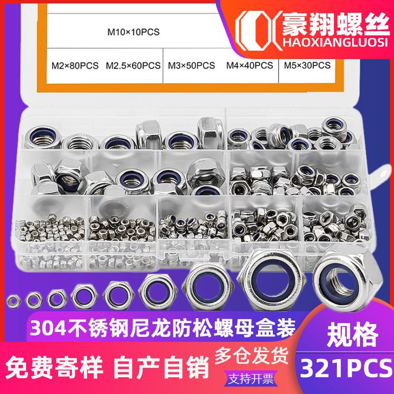 304ステンレスナイロン緩み防止ナットケース滑り止めロックセルフロックナットねじキャップセット321pcs