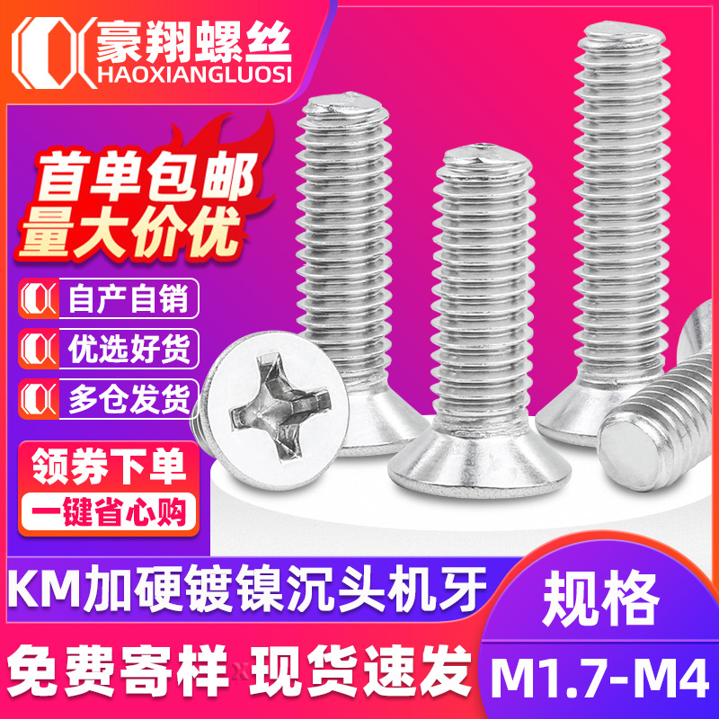 6.8級km十字溝沈頭ニッケルメッキ硬ねじ炭素鋼十字平頭機糸ねじm1 | m2 | m3 | m4
