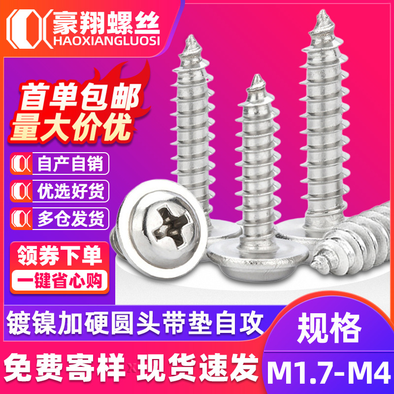ニッケルメッキハードPWA十字丸ヘッドパッド付きタッピングスクリュー盤ヘッドバンド中間子タッピングタッピングハードM3 | M4