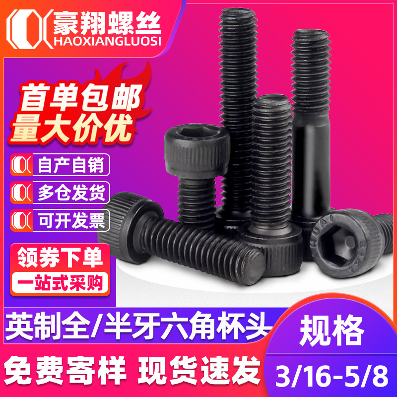 12.9h高強度円筒ヘッドインチ半歯内六角ボルトロールカップ頭六角ネジ3/16
