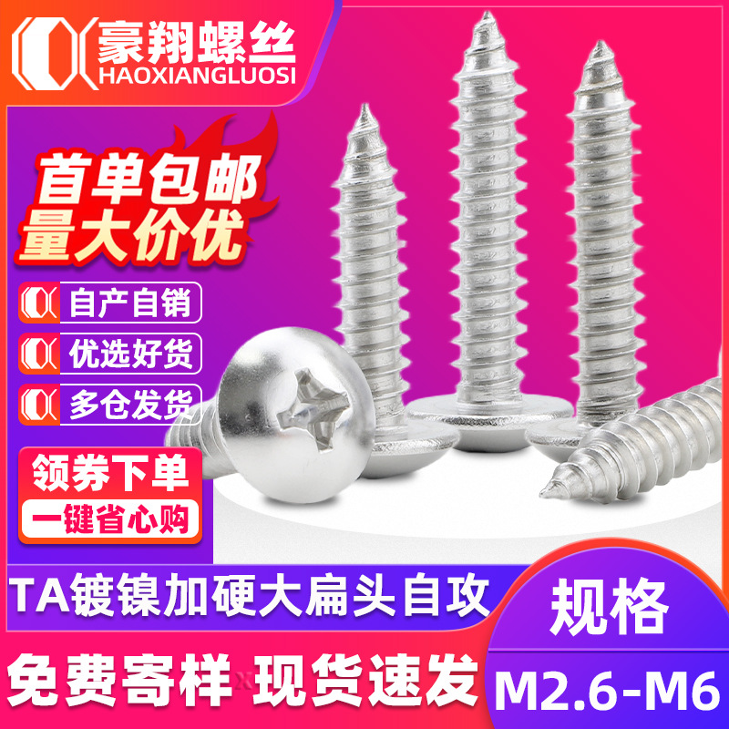 TB炭素鋼ニッケルメッキ十字穴付き大平頭セルフタッピンねじ、マッシュルームヘッド、アンブレラヘッド、平尾セルフタッピンねじ、平丸頭M4