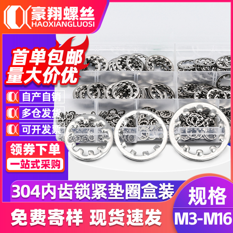410pcs304ステンレス内歯ロックワッシャー鋸歯パッド箱入りネジセットワッシャー