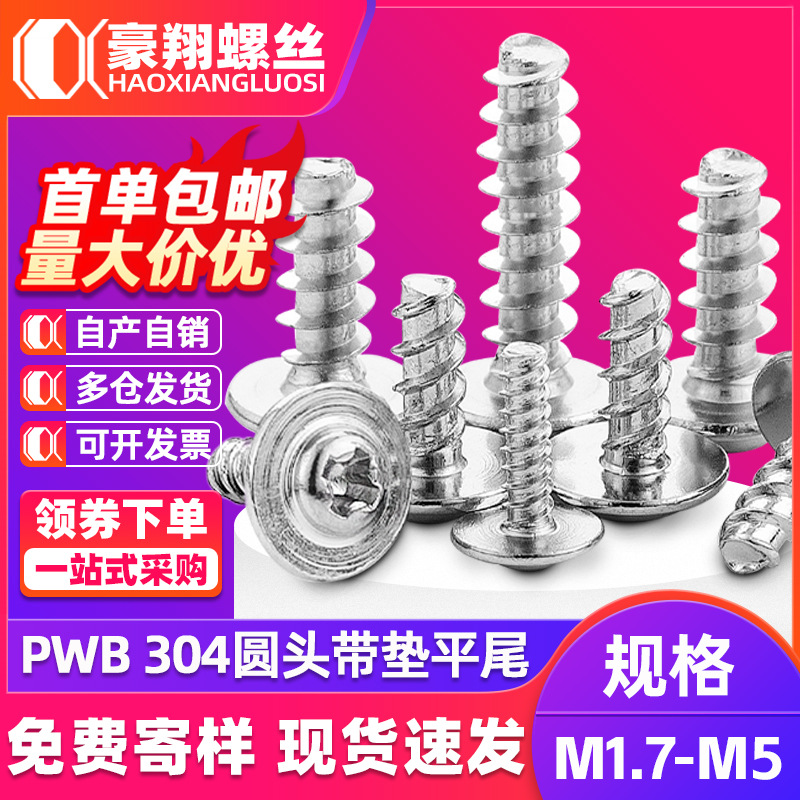 304 ステンレス鋼十字穴付き丸頭平尾セルフタッピングネジ PWB なべ頭パッド付きセルフタッピングネジ M2M3M4M5