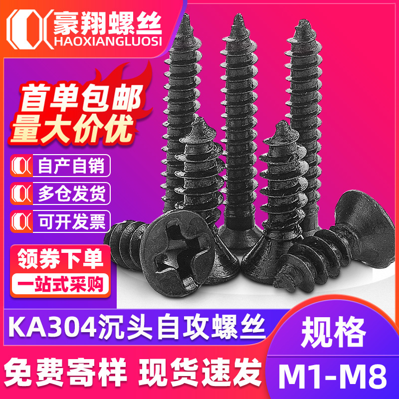 KAメッキ黒亜鉛304ステンレス黒タッピングねじ十字皿ねじ平頭ねじM1.2/m1.4 m 2