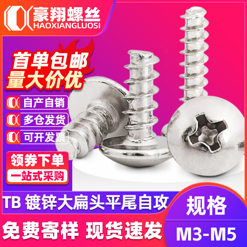 TB炭素鋼十字穴付き大平頭平尾セルフタッピンねじ、亜鉛メッキ大平頭マッシュルーム傘頭セルフタッピンねじM3-M5