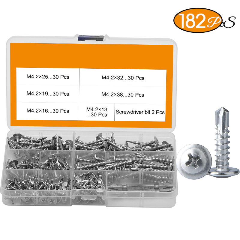 410ステンレス丸頭ドリルねじ箱セットヘッド中間子付きドリルヘッドセット182pcs