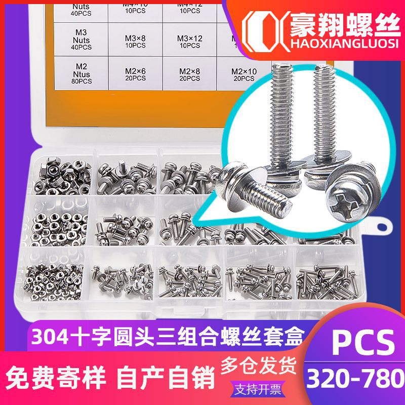 304ステンレス十字丸頭三組ねじナットガスケットセット盤頭機歯ねじケース