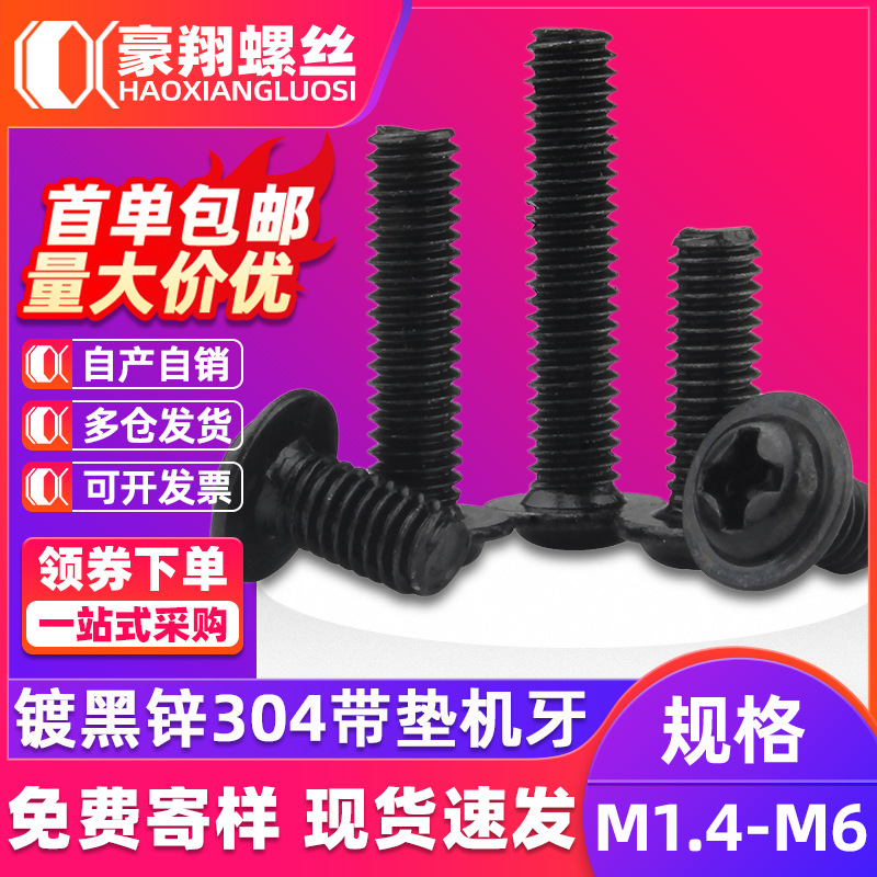 304ステンレス黒亜铅十字丸ヘッド自动パッド付ネジm3 | m4盘ヘッド中間子ネジ付き大中間子ネジ